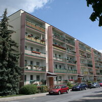 Unsere voll sanierten 5-geschossigen Gebäude liegen äußerst verkehrsgünstig und bieten dennoch ein ruhiges von Grünflächen umgebenes Wohnumfeld. So erreichen Sie in einen Umkreis von 1 km Lebensmitteldiscounter, Baumarkt, Bäcker, Grund- und Mittelschule, Bücherei und Haltestelle vom ÖPNV (z.B. wochentags stündliche, direkte Zugverbindung nach Dresden); in einem Umkreis von 2 km Allgemeinarzt, Sparkasse, Apotheke, Gemeinde- verwaltung, die Auffahrt zur Autobahn (A 4) sowie ein schönes Waldgebiet. Der Kindergarten ist nur 2,5 km entfernt.