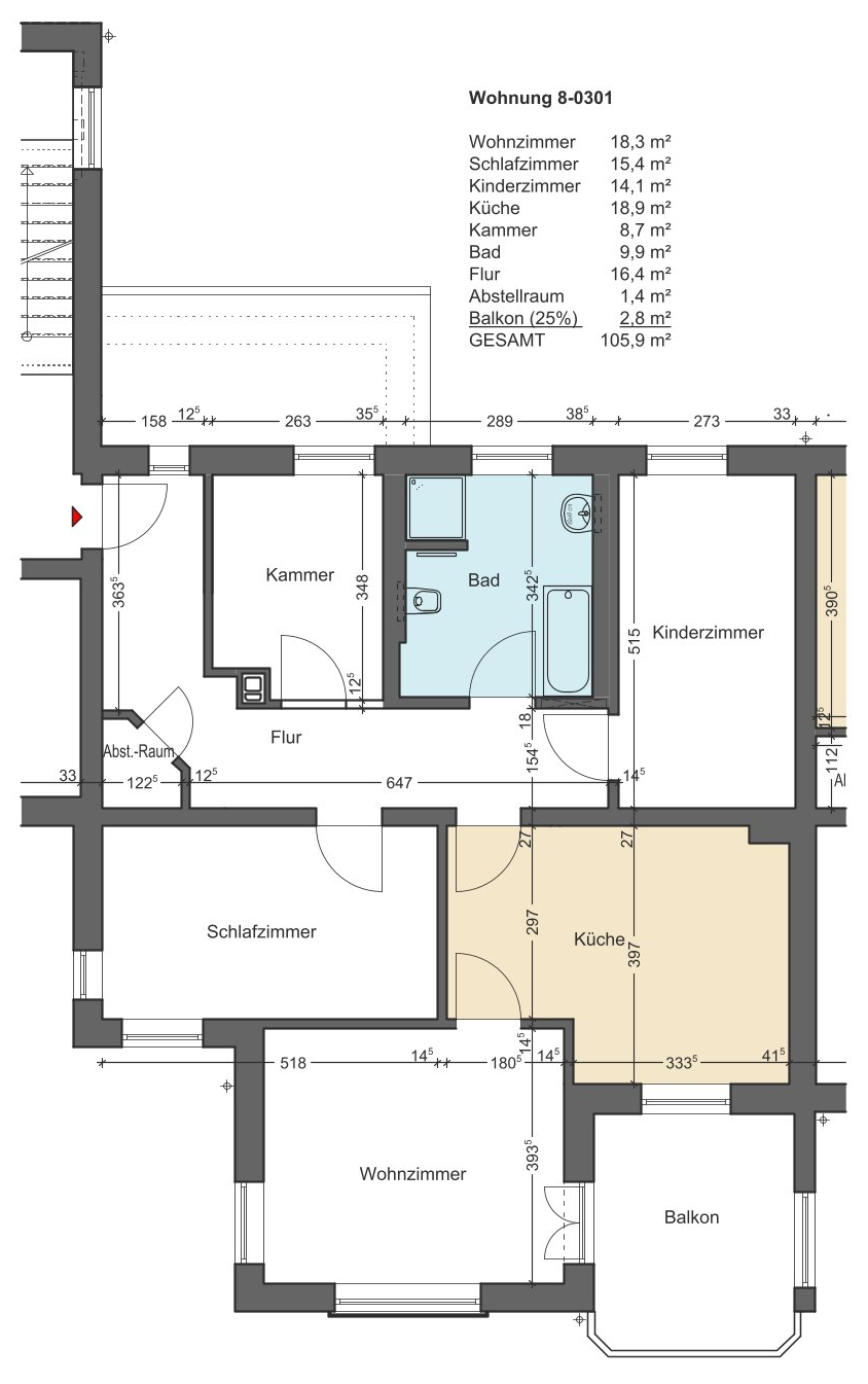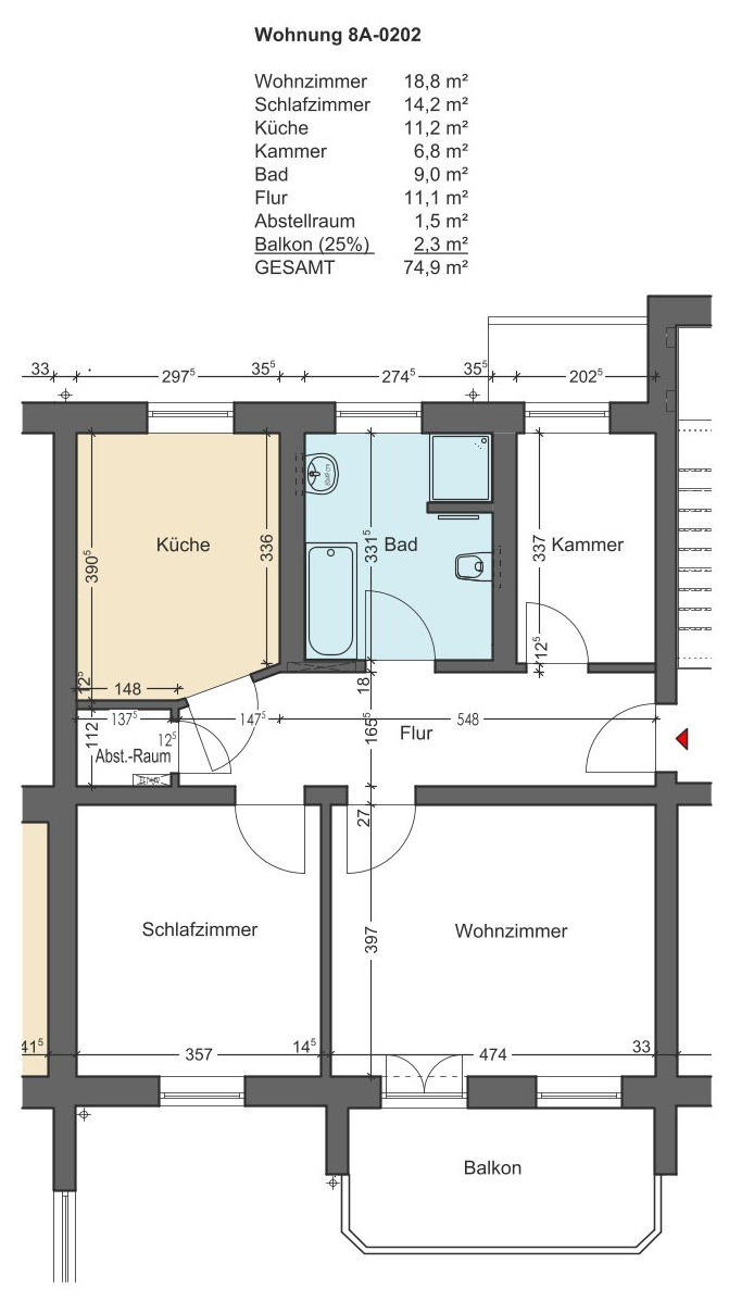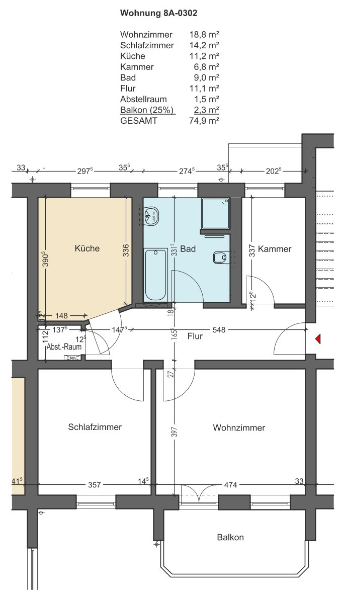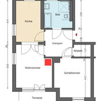 Die Wohn- und Schlafräume sind nach Süden ausgerichtet, somit ist für Sonne, einen schönen Blick ins Grüne und Ruhe gesorgt.