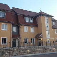 Die Volksbank und die evangelische Kirche grenzen direkt an den Rossplatz. Zum Bäcker und zu einem Gasthof sind es 130m (2 Gehminuten). Das Ärztehaus ist 350m (4 Gehminuten) entfernt. Die Sparkasse, Apotheke und den Netto-Markt erreichen Sie innerhalb von 550m (7 Gehminuten). Der Penny-Markt ist 900m (11 Gehminuten) entfernt. Auf dem Bahnhof, der 120 m (2 Gehminuten) entfernt liegt können Sie in den Zug nach Dresden einsteigen und fahren - ohne Umsteigen zu müssen - innerhalb von 43 Minuten auf dem Bahnhof Dresden-Neustadt.